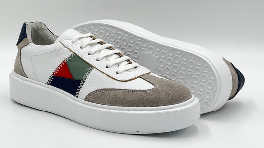 Handcrafted by fourth-generation artisans, these luxury men's dress sneakers feature premium supple calfskin leather, a pillow-padded tongue and collar, and soles that are stitched to the upper, not glued. All the features you would expect from a luxury men's dressy sneaker.