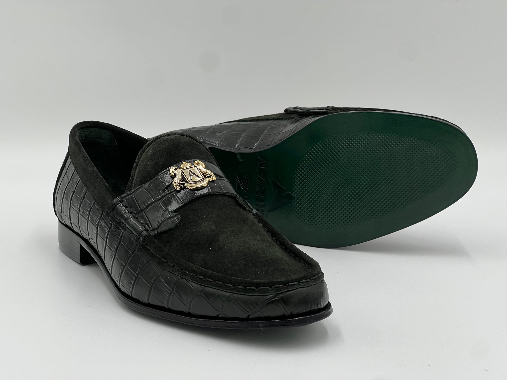 Hand Made Green Suede Dress Shoes . A modern take on classic style with Green hand-made Green, the cap is handmade from premium leather with a bold color combination. All Alvarenzo shoes feature a durable blake flex construction with leather soles and waxed dress shoe laces. A modern take on classic style with Green hand-Made Green makes your footprint unique. A modern take on classic style with Green hand-Made Black completes any look with a bold and sophisticated color palette. All Alvarenzo styles ship free to the United States and are eligible for our Buy Back program.